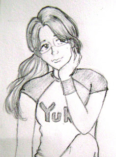 um desenho de mim, feito por mim. tentando (e conseguindo) me libertar dos traços do "jeito mangá de desenhar". (o ombro ta torto, eu sei. ja to consertando...) >:B